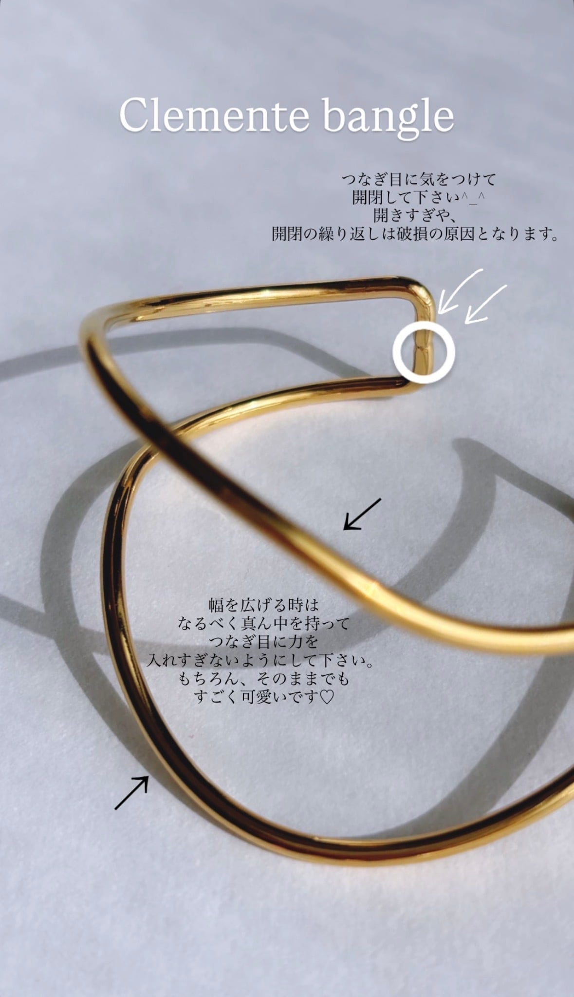 ・メッキ加工を施した商品は、特性上変色を避ける事ができません。汗や雨などの水分や、油分、日焼け止めなどの化粧品、紫外線に長時間触れるなど、使用状況によってはメッキの劣化が早まる場合があります。また、肌、衣類、他のアクセサリーなどとの摩擦や傷はメッキ剥がれの原因になります。
