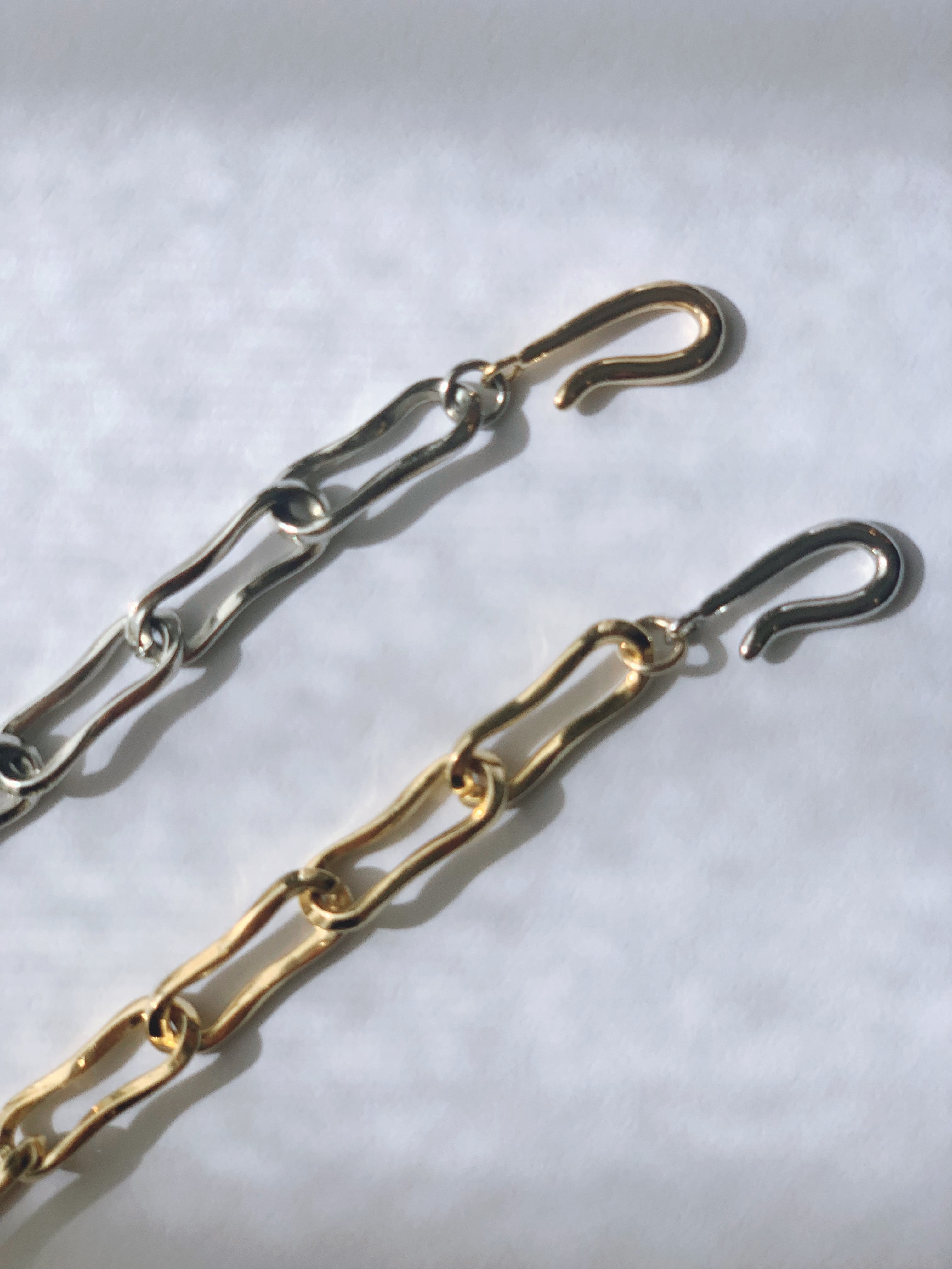 ・メッキ加工を施した商品は、特性上変色を避ける事ができません。汗や雨などの水分や、油分、日焼け止めなどの化粧品、紫外線に長時間触れるなど、使用状況によってはメッキの劣化が早まる場合があります。また、肌、衣類、他のアクセサリーなどとの摩擦や傷はメッキ剥がれの原因になります。